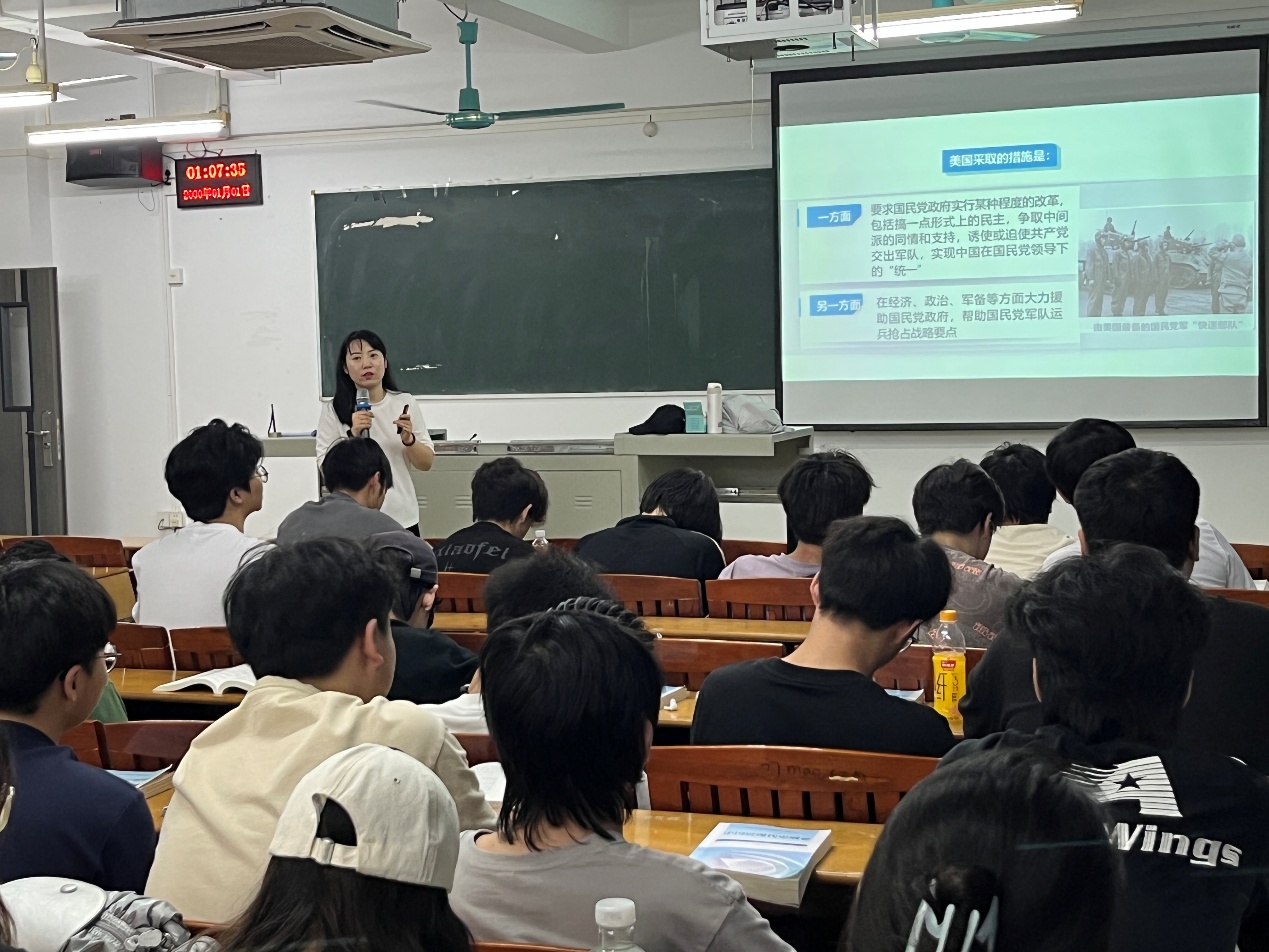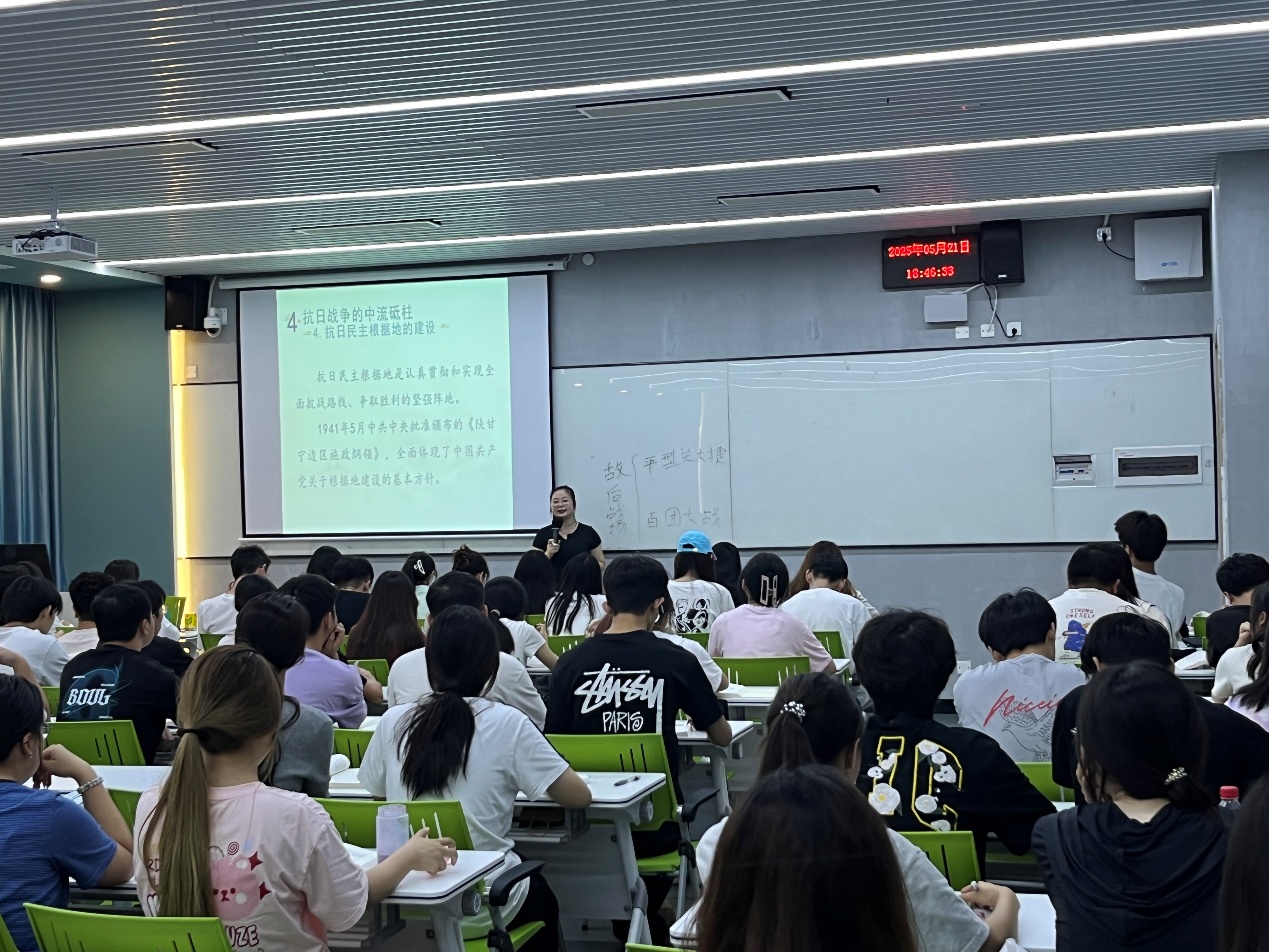 刘秀秀老师课上主讲的是《中国近现代史纲要》第六章“中华民族抗日战争”第四节,其围绕“抗日战争的中流砥柱”主题,深入讲解“抗日民主根据地的建设”“大后方的抗日民主运动和进步文化运动”“中国共产党的自身建设”等内容,呈现了一堂史料翔实、逻辑清晰、富有感染力的思想政治理论课。