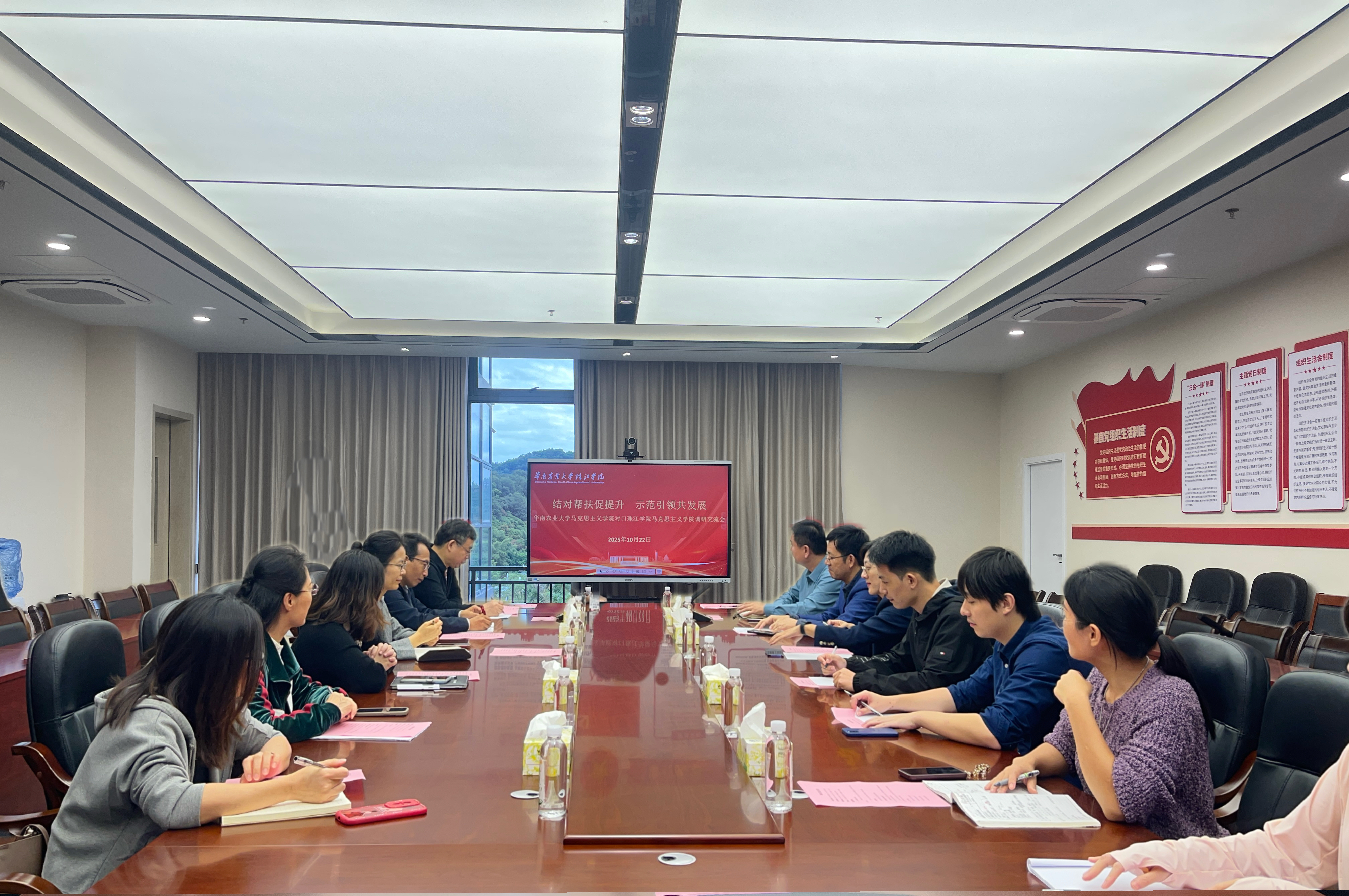 10月22日下午,华南农业大学马克思主义学院党委书记项赠一行到访华珠,围绕“结对帮扶促提升,示范引领共发展”主题开展对口调研交流。会议聚焦党组织建设、师资队伍建设、教学能力提升等关键领域,共商结对共建细化方案与实施路径。华珠党委书记赵凤致欢迎辞,马克思主义学院院长刘社欣主持会议。