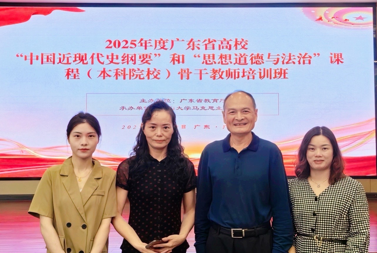 11月9日,由广东省教育厅主办、中山大学马克思主义学院承办的2025年度广东省高校“中国近现代史纲要”课与“思想道德与法治”课(本科院校)骨干教师培训班顺利举行。华珠马克思主义学院程建军、马丽、聂玉珍、陈明明老师一同参与了相关学习。本次培训聚焦中国式现代化、“十五五”规划建议等重大理论,紧扣课堂教学实践,通过理论讲授与教学示范相结合的方式,助力思政课教师提升教学能力与育人实效。