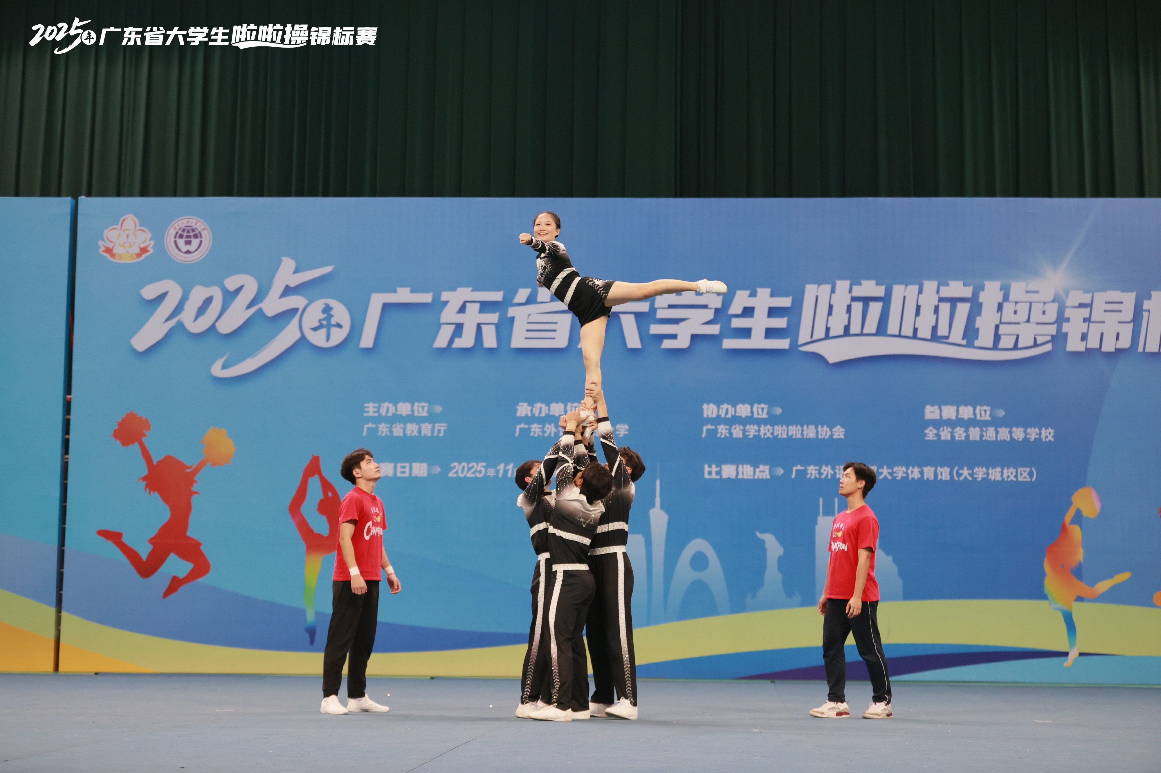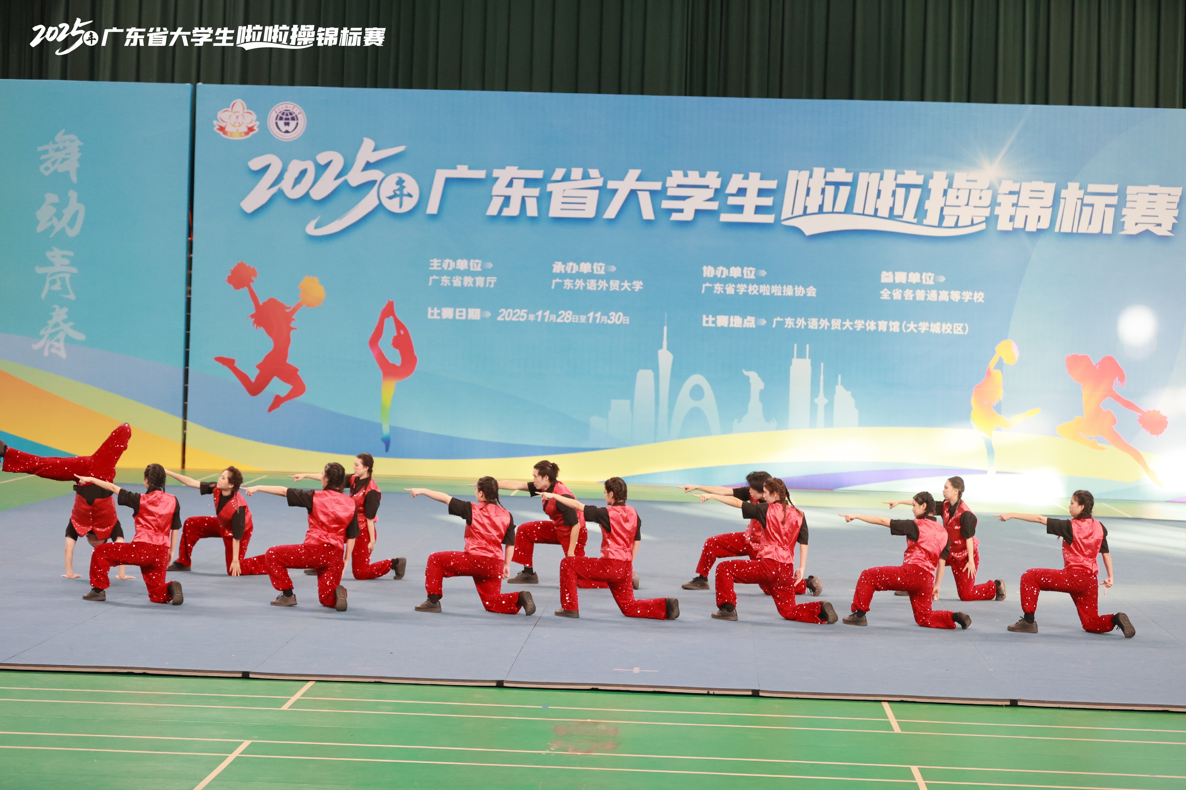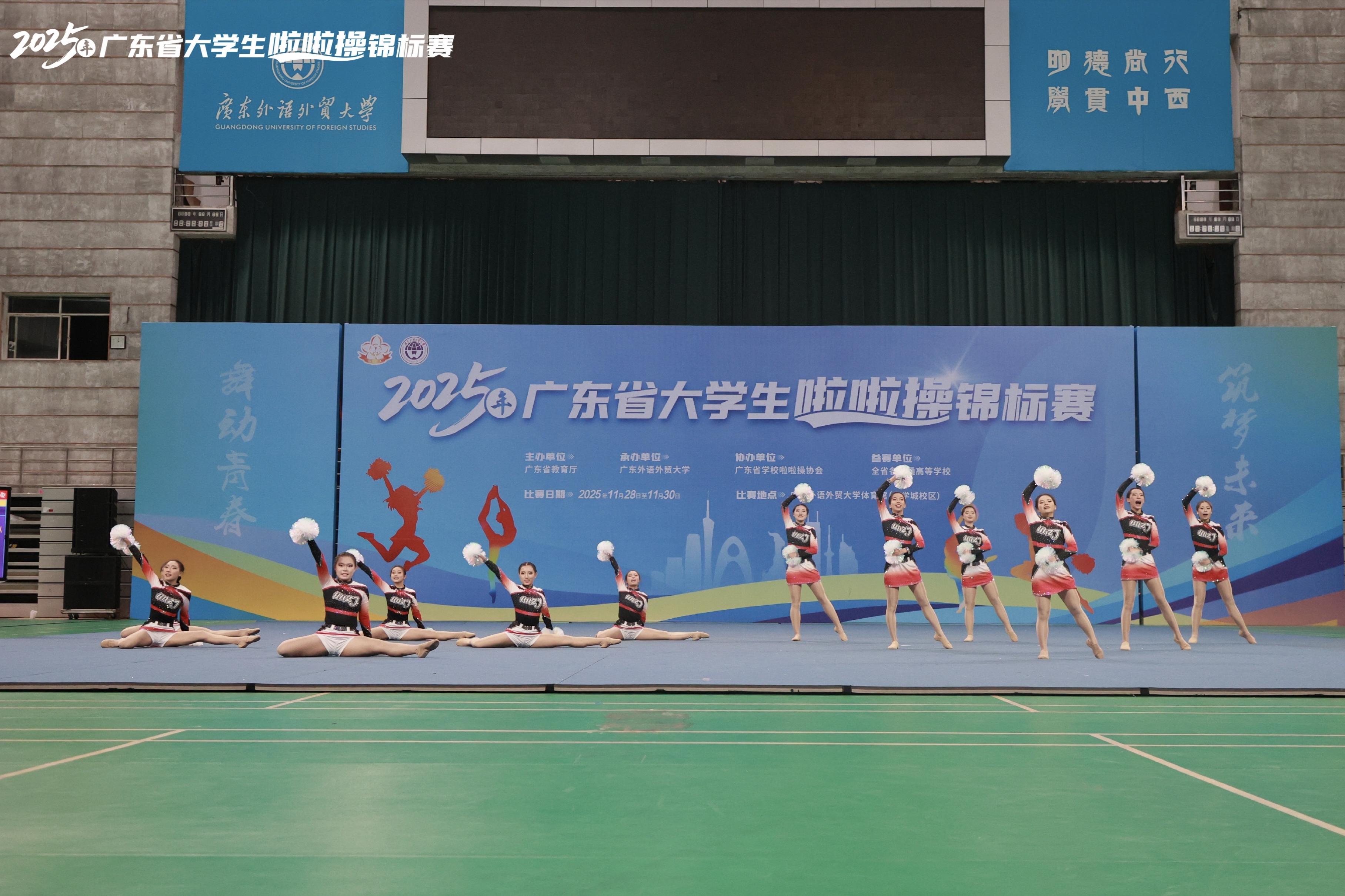 11月28日至30日,由广东省教育厅主办、广东外语外贸大学承办、广东省学校啦啦操协会协办的2025年广东省大学生啦啦操锦标赛,于广东外语外贸大学(大学城校区)体育馆圆满举行。全省各高校啦啦操精英队伍齐聚一堂,共同演绎了一场力与美交融的青春盛宴。