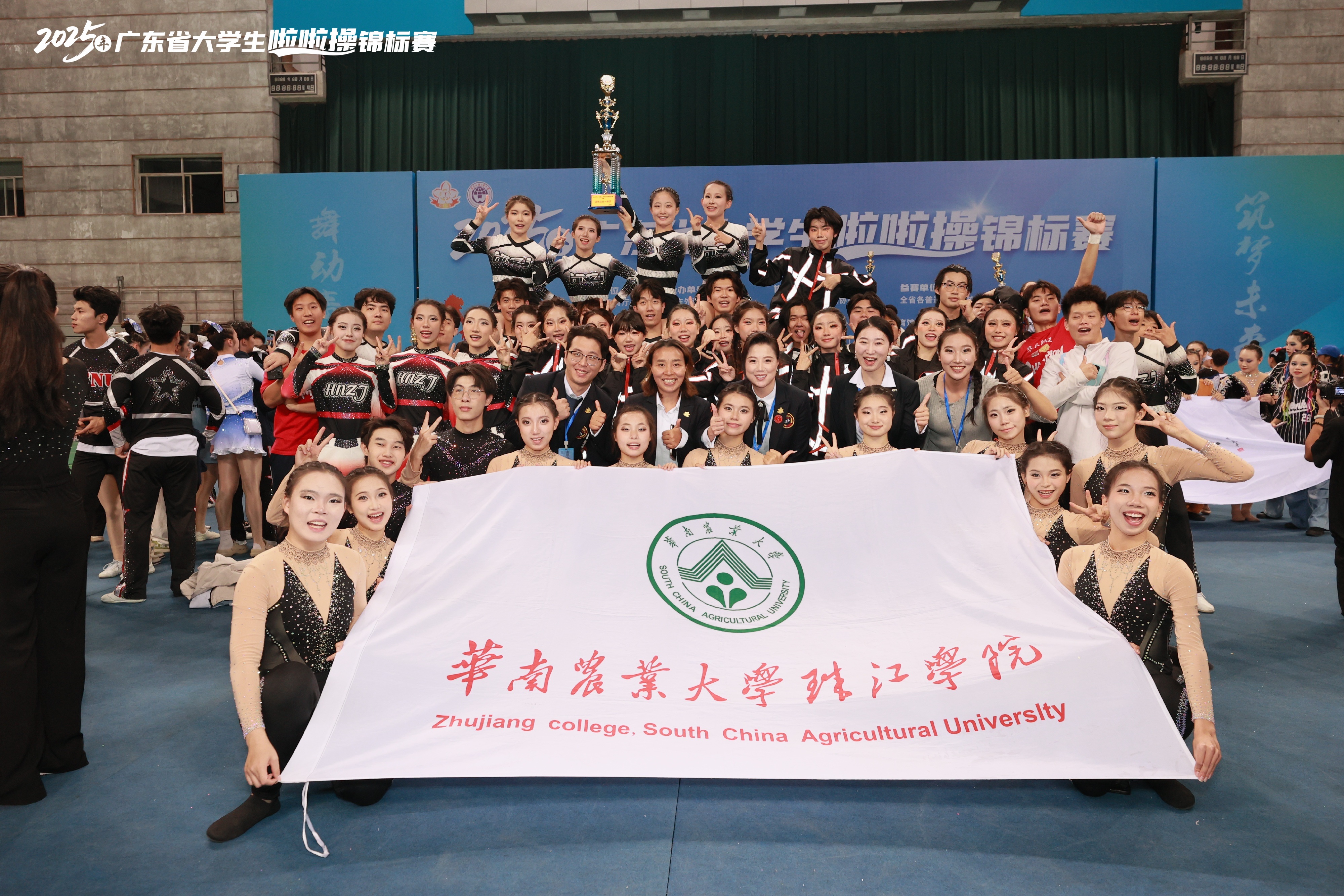 此次青春盛会中,在华珠体育学院院长简妮娜领队指导下,我校啦啦操代表队凭借扎实的技艺、默契的配合与昂扬的斗志脱颖而出,最终以卓越表现取得以下优秀成绩: